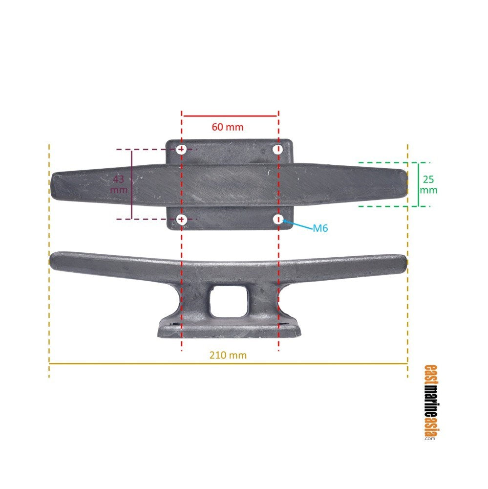 Z Spars 1192 - Aluminium spar cleat or mast cleat is 210 mm long x 25 mm wide, fastens with 2 x 6 mm fasteners on 31 mm hole centres. Typically installed in the factory with a special deep-nosed rivet tool but can also be installed with machine screws.